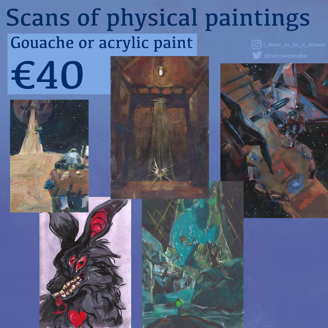 - Scan of an A5 sized painting of your choice, so mind that the quality is only as good as my scanner provides!